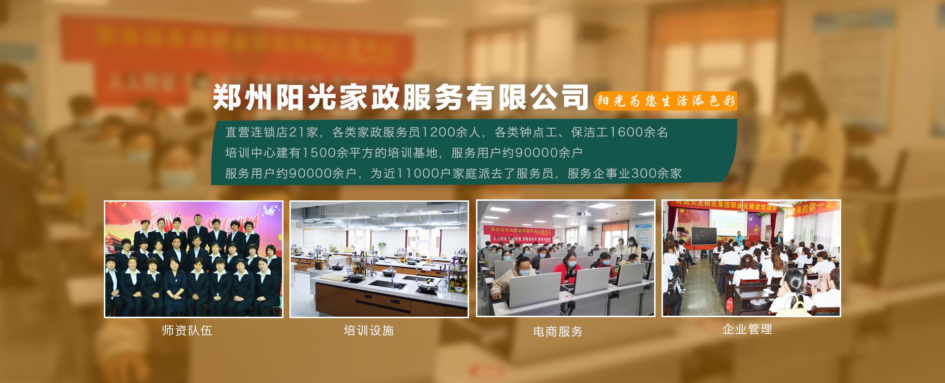 鄭州陽光家政服務(wù)有限公司成立于1998年,是鄭州市第 一家經(jīng)工商登記的家政服務(wù)企業(yè),是以家政服務(wù)、家政培訓(xùn)、社區(qū)服務(wù)、社區(qū)養(yǎng)老、托幼護理、清洗保潔為一體的社區(qū)生活服務(wù)集成商。公司有直營連鎖店21家,各類家政服務(wù)員1200余人,各類鐘點工、保潔工1600余名。鄭州陽光家政商學院建有1500余平方的培訓(xùn)基地,···